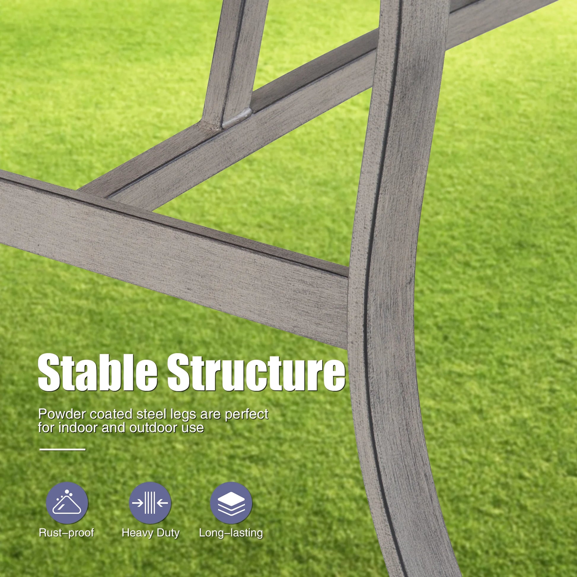 Hand-Painted Teak Finish: Every metal component showcases an artisanal distressed-teak texture, adding a touch of rustic sophistication to modern outdoor spaces.