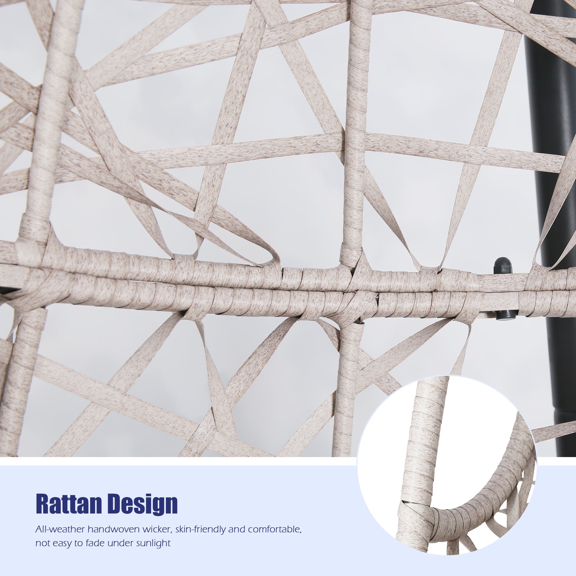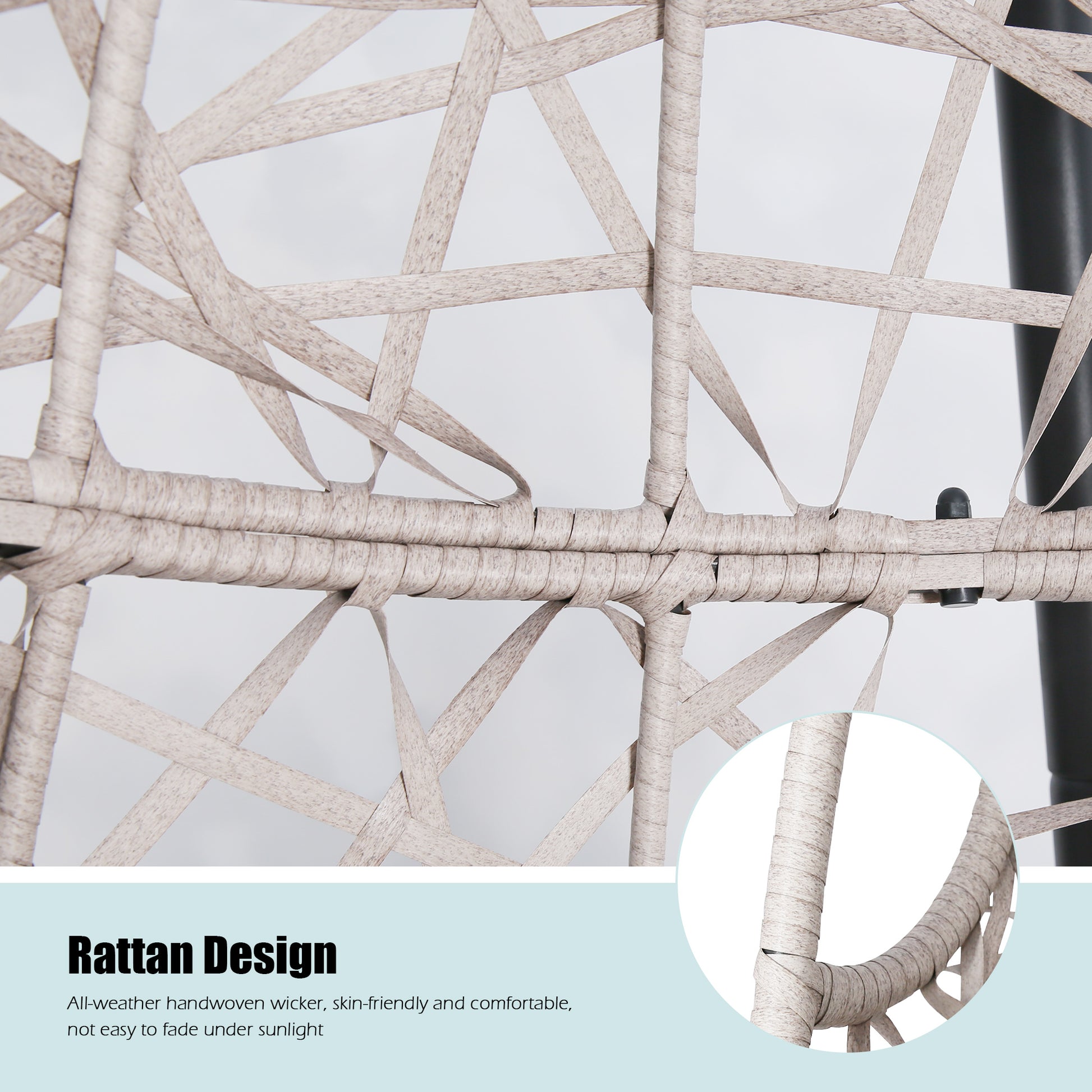 - Covered with handwoven premium PE wicker, weather-resistant and built to last.
