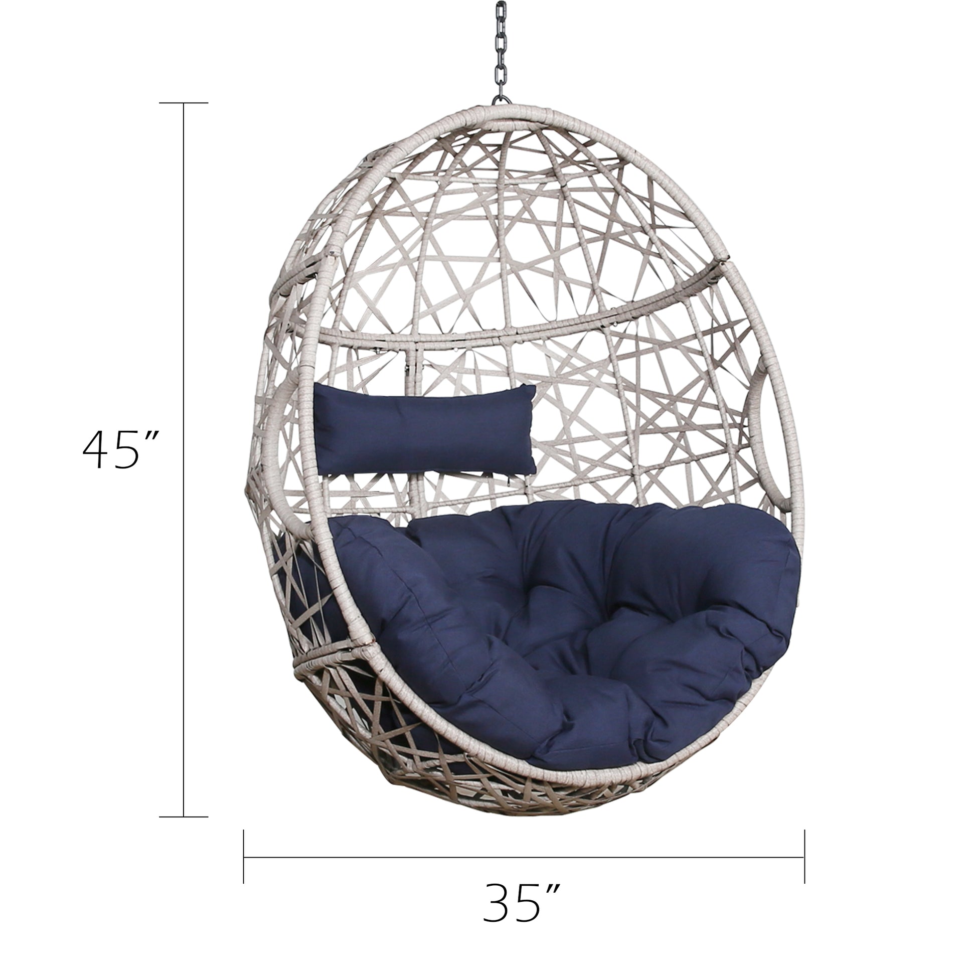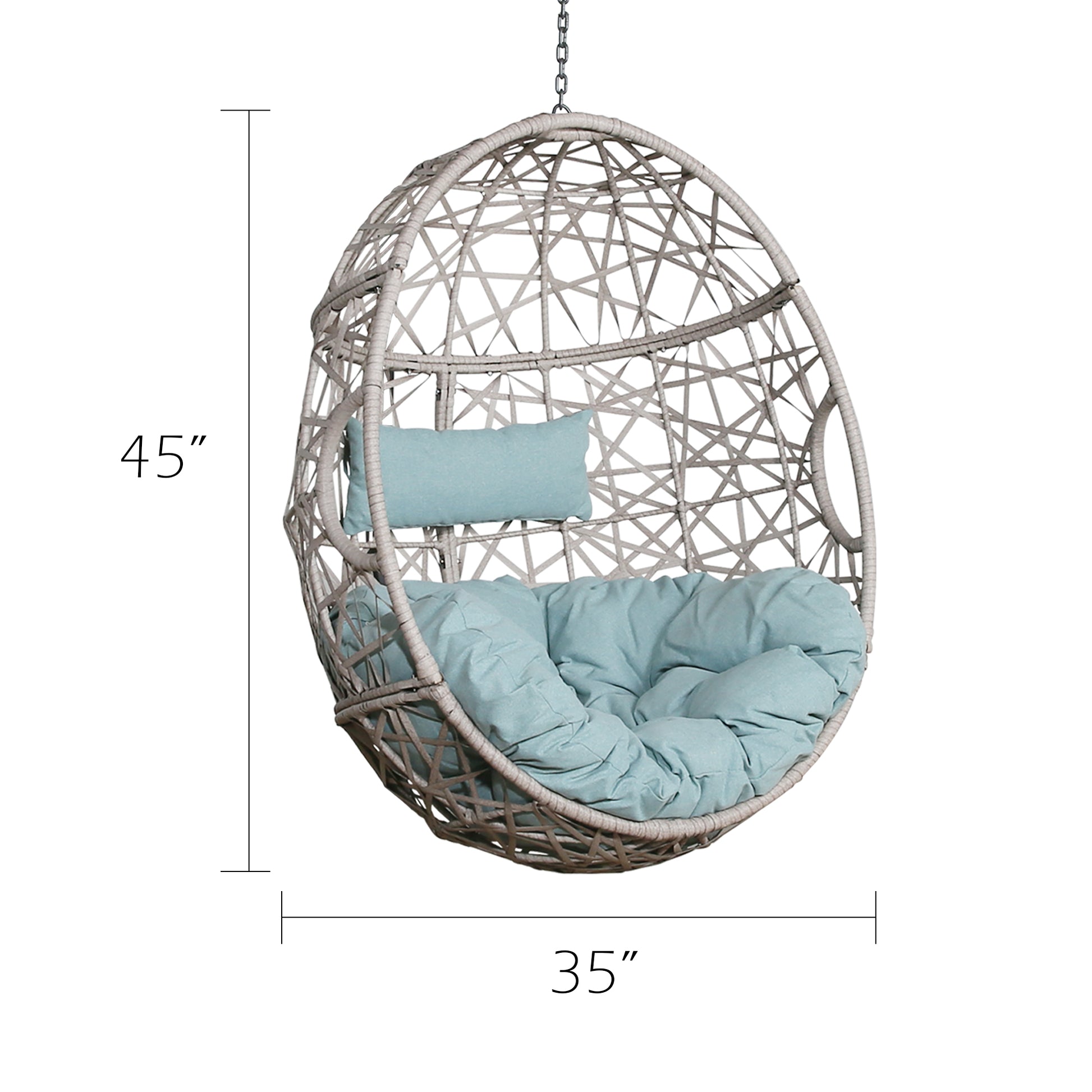 If you're looking for the perfect perch for an indoor or outdoor space, we are proud to present this classic designed egg swing chair for you. Beautiful patterns woven from high-quality wicker give this hammock swing chair an eye-catching look, classic colors blend well with a variety of decorative styles, and ergonomic cushion and headrest pillow provides you the ultimate comfort. It is undoubtedly a good choice to sit on it for a nap and read or enjoy the breeze on the patio, poolside, garden, porch, balcony, backyard, deck and indoor.